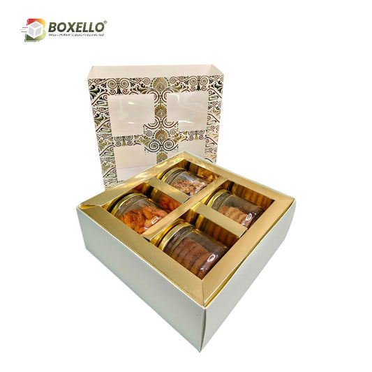 4 jar Hamper Box with Gold Foiling (7.5"x7.5"x3.5")