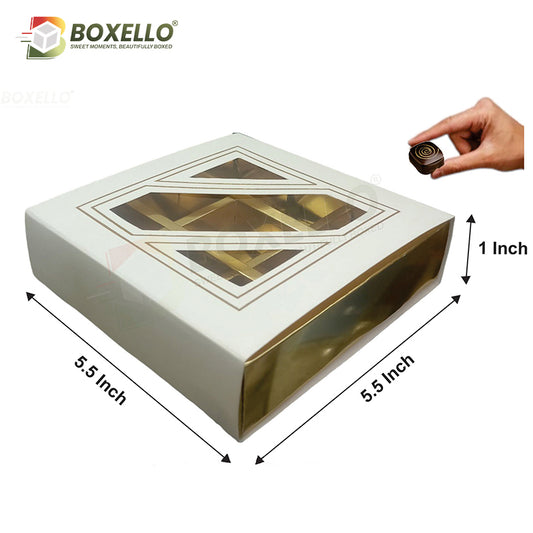 9 Pcs Chocolate Box with Gold Foiling | Golden Tray ( 5.7" x 5.7" x 1")