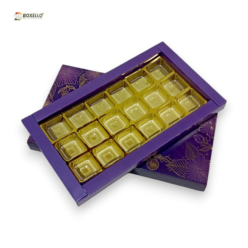 18 Pcs Chocolate Box with Gold Foiling | Golden Tray ( 11" x 5.7" x 1" )