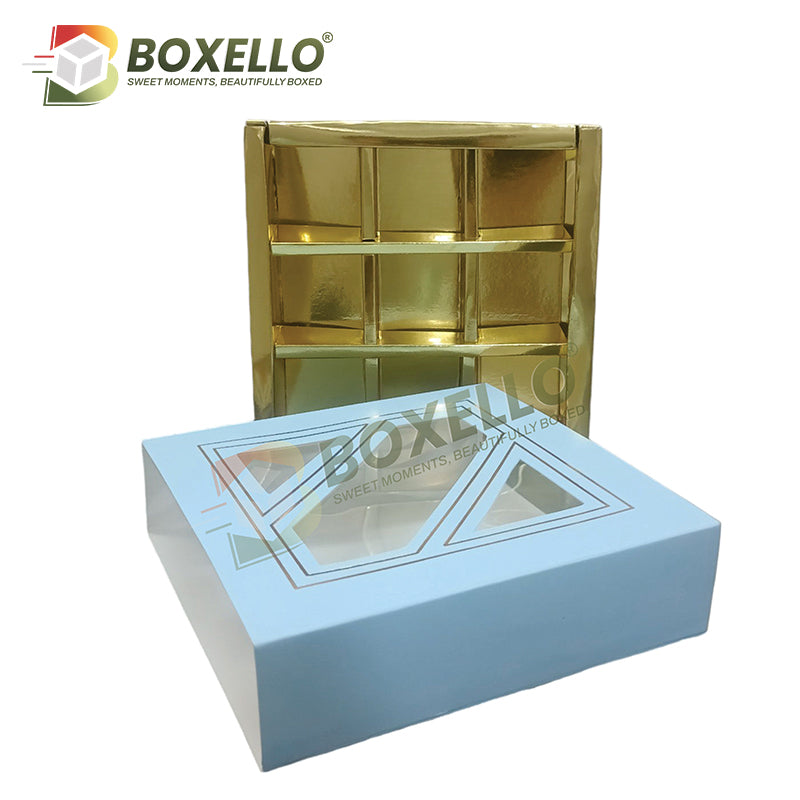 - Product Description: Thick window Micron sheet with Gold Foiling chocolate bites box.